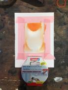 ACHTUNG!!! Diese Bänder sind für den gewohnten Gebrauch zum Abdecken für Aquarell und Tintenhintergründe unbrauchbar Fig 1. Der neue Klebstoff verändert die Oberflächenspannung in Berührung mit Wasser und verhindert das gleichmässige Ausfliessen Fig.2